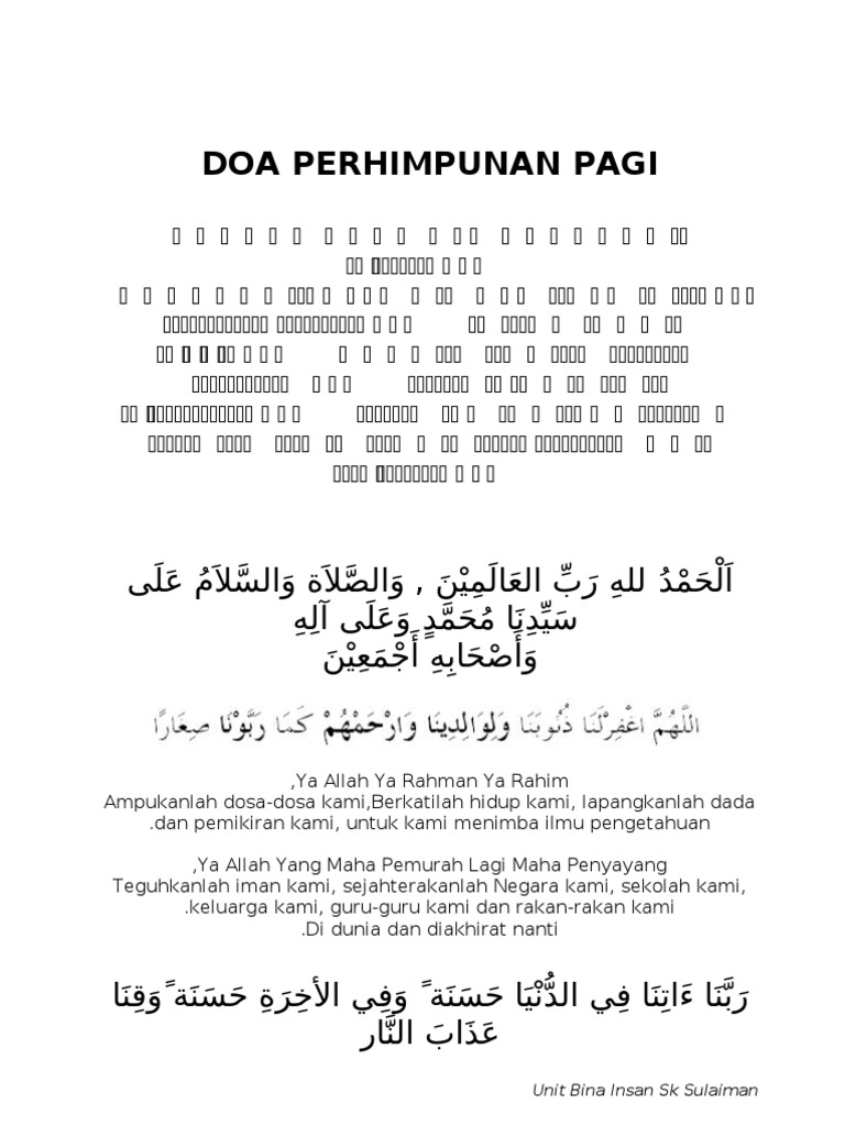 Doa Perhimpunan Pagi Sk Sulaiman Pdf